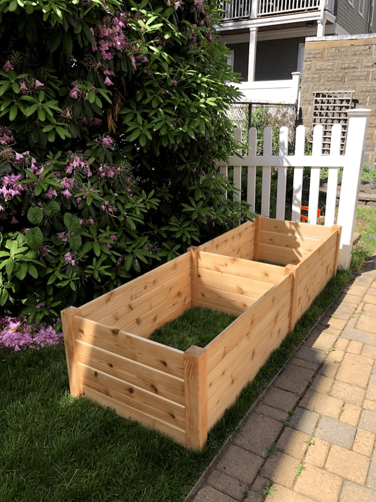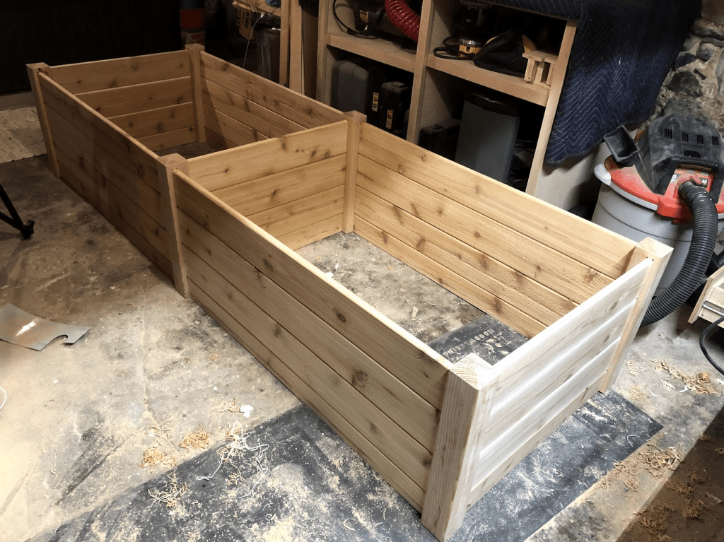 I built this large raised cedar bed for a person who lives in a nearby town who wanted a place for veggies:
