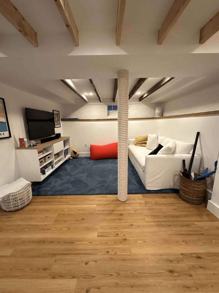 This was our process of turning a dark, dingy, Northeast fieldstone basement into a warm, bright, livable area.