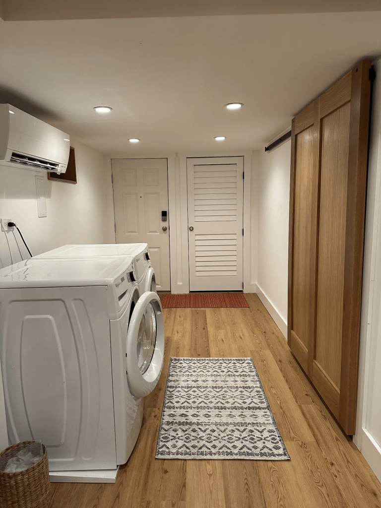 The laundry area is spacious, with plans still to build some sort of wood countertop: